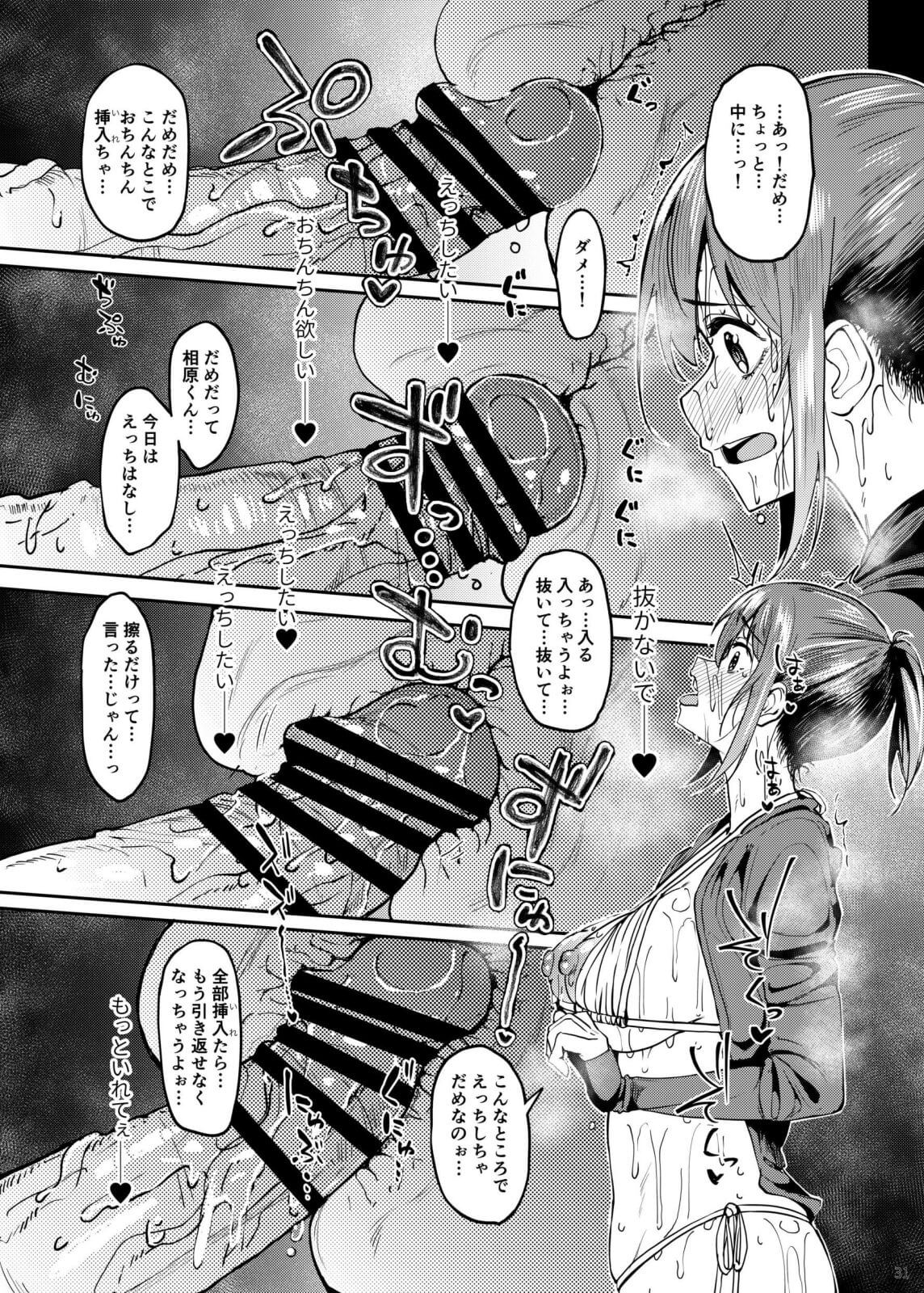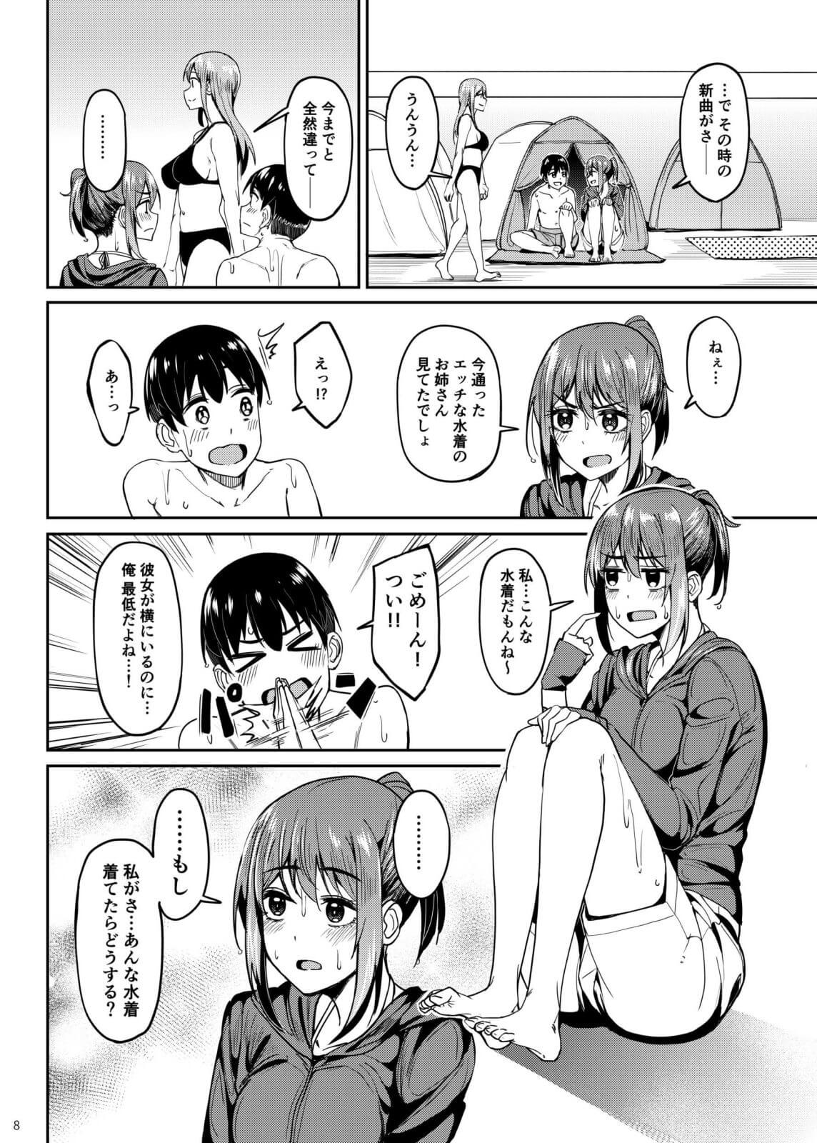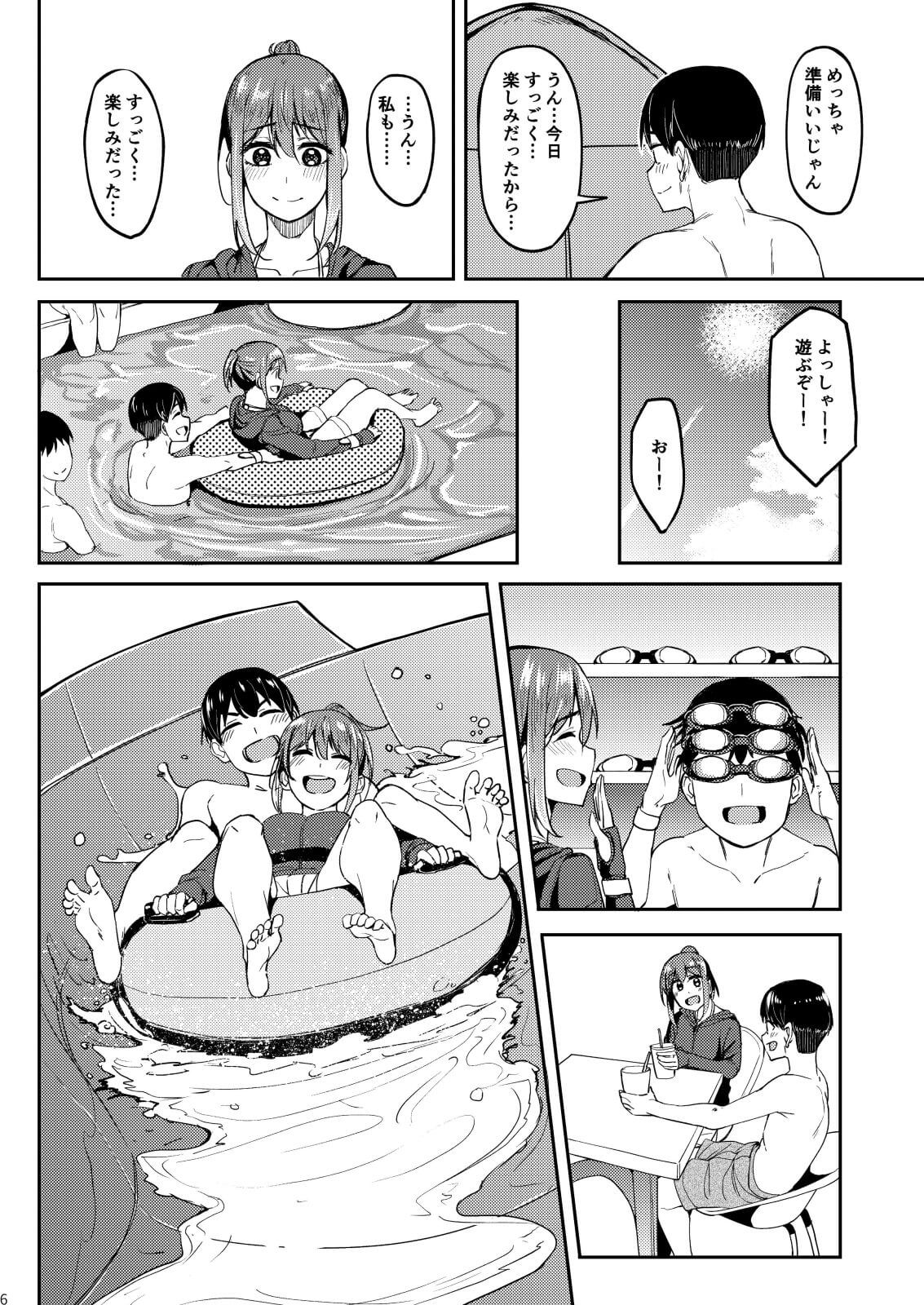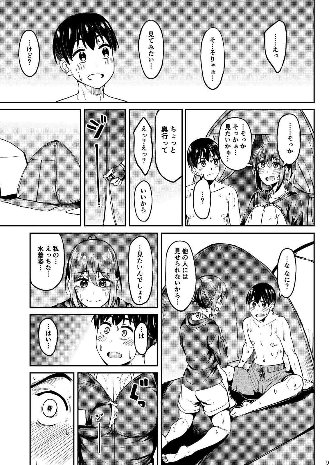 【エロ漫画】テントの中で汗だく声我慢セックス!ウォーターパークで彼氏にだけ見せた水着姿にフルボッキイチャラブエッチ!(サンプル14枚)
