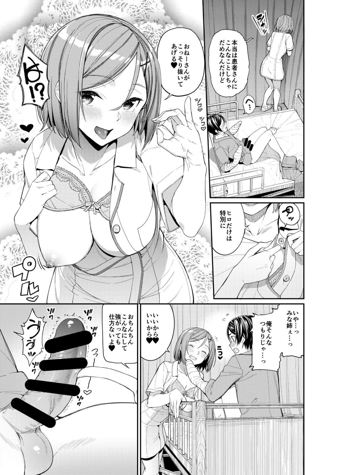幼馴染お姉さん看護師のオチンチン介護!子供の頃によくからかわれていた無防備エッチな近所のお姉さんと入院先で再会!病室でこっそりオナニーが見つかってしまい、昔からオナネタにしていたお姉さんに一週間溜め込んだ精子を搾り取られる!