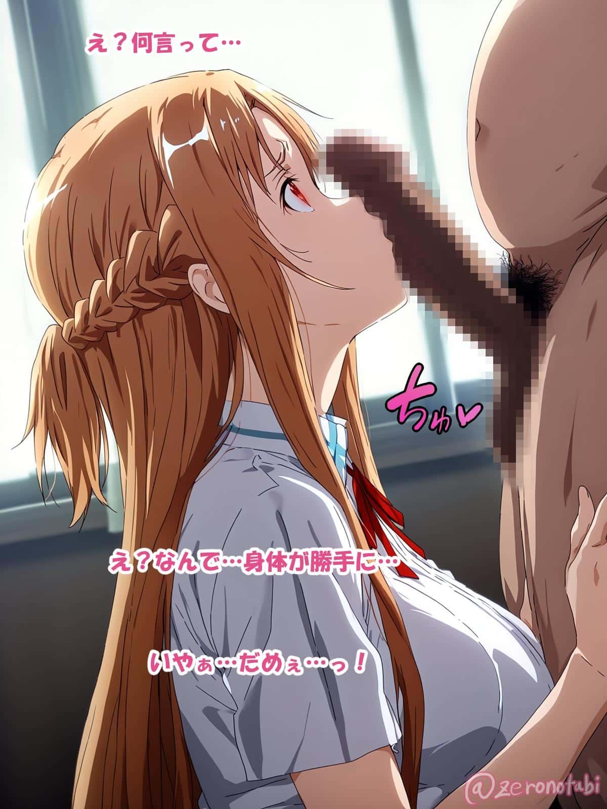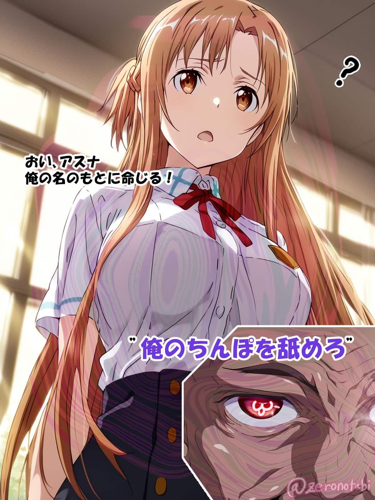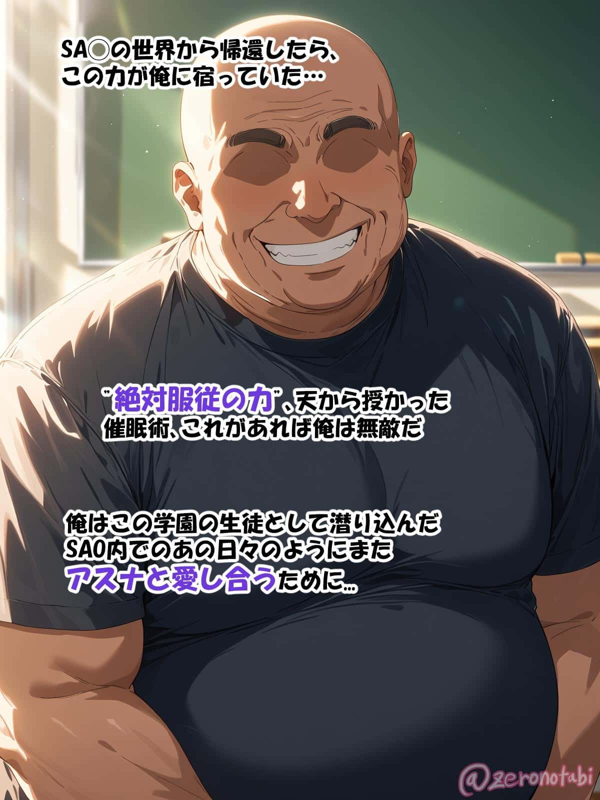 SAO世界で催眠レイプで子宮まで堕とされたアスナが現実世界に帰還した時にNTRの記憶を失っていた…。さっそく被害者達が通う学園に潜入したキモおじは、アスナに再び催眠をかけて思うがままにNTR調教してしまう…!