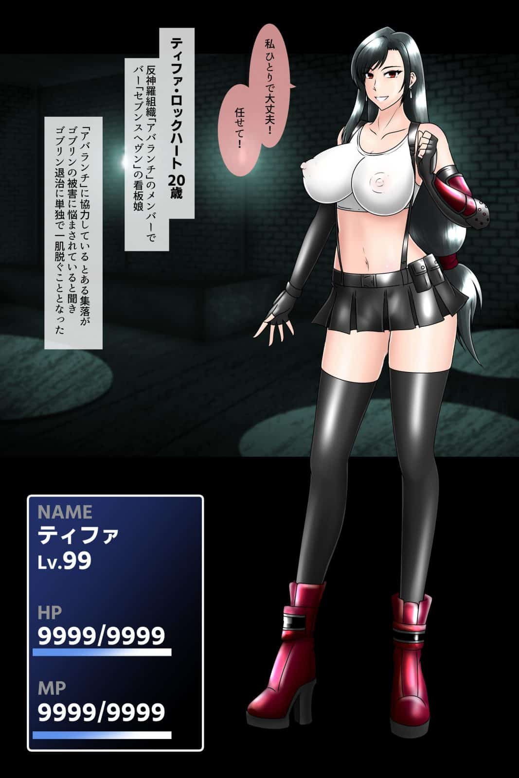 レベル99のティファがゴブリンなど余裕だと単独で退治に出ることに…!エロダンジョンを進むうちに体が媚毒に侵され動けなくなっていき、そこをエロゴブリン達に襲われてしまう…!普段の何倍もビンカンになった体を雑魚に弄くり回されてイカされまくる…。