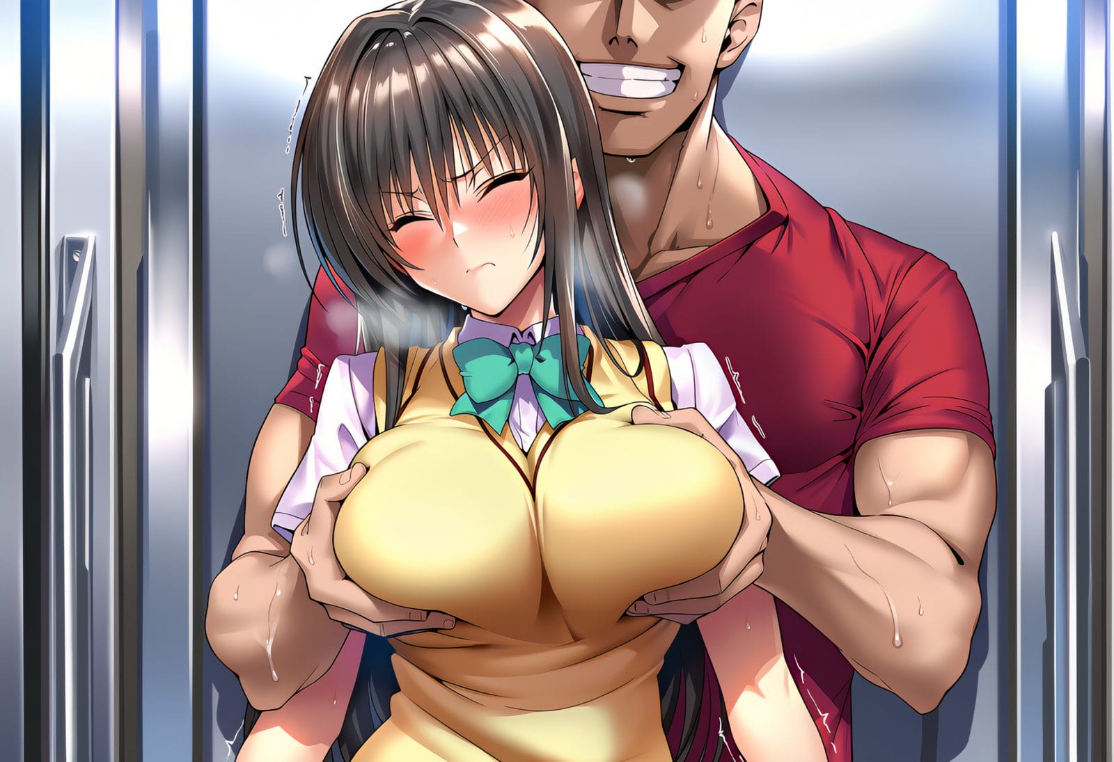 つり革に捕まって電車に乗っていた古手川唯の無防備なオッパイを後ろから痴漢男に揉みほぐされて、強気に快楽に抗おうとするもトロトロにされてしまう…!そのままホテルに連れ込まれてアヘ顔堕ちするまでイカされまくる…