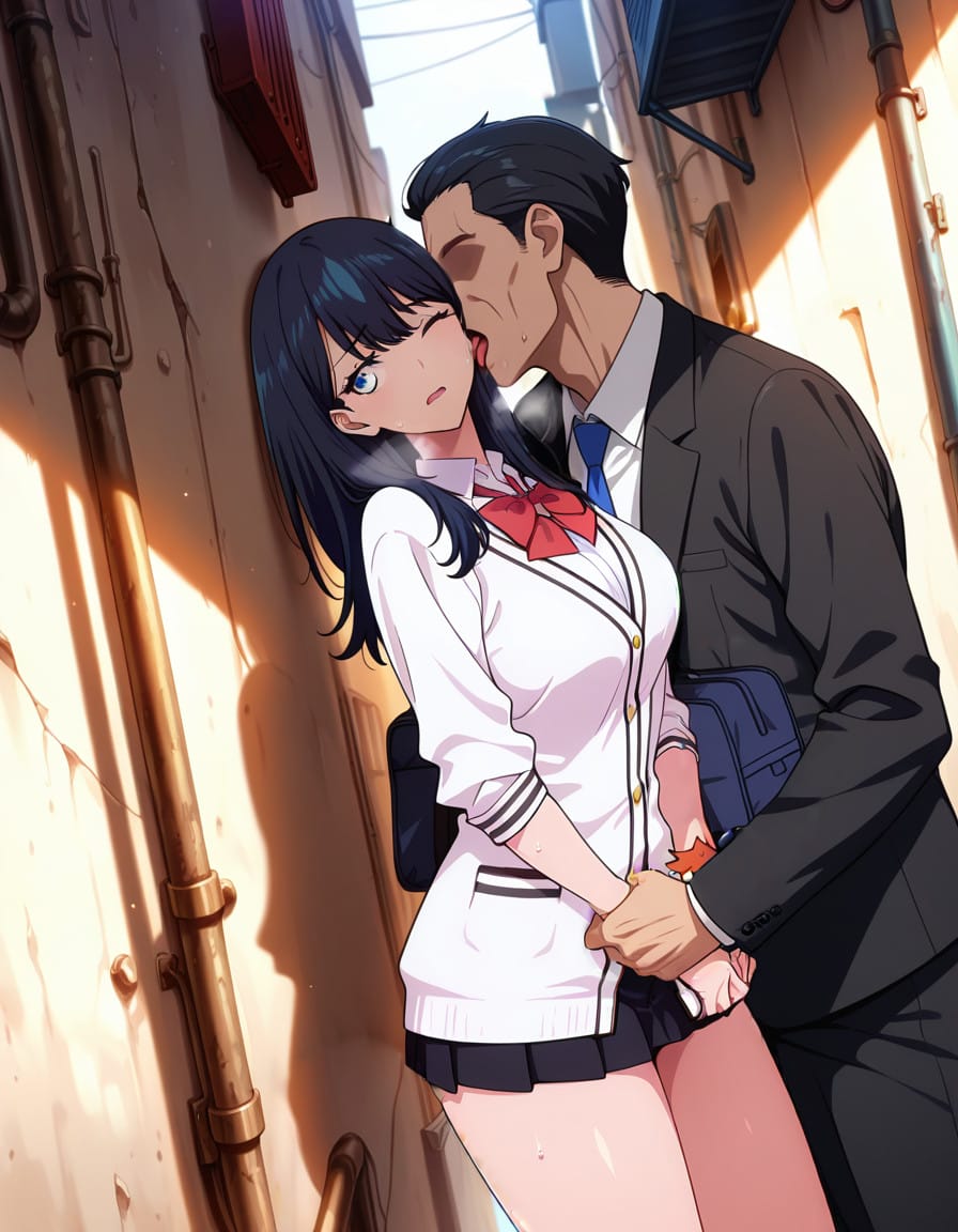 【グリッドマン・エロ漫画】変態オヤジに路地裏へ追い込まれた宝多六花!路地裏レイプをネタに脅迫されて呼び出し調教…!