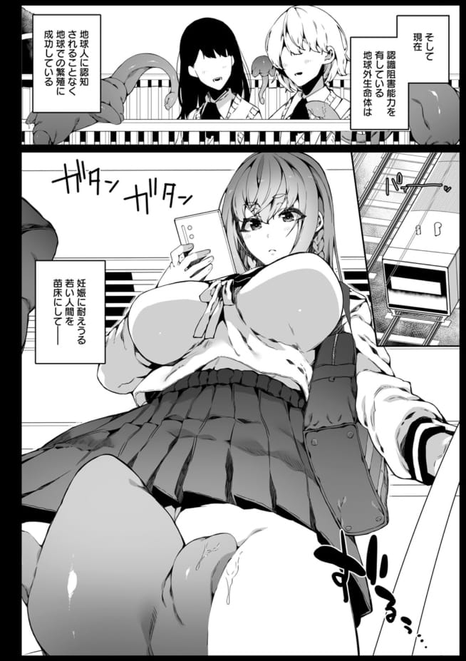 【エロ漫画】宇宙触手の苗床侵略!認識阻害能力をもった宇宙人によって知らない内に子宮を攻略される美少女達!