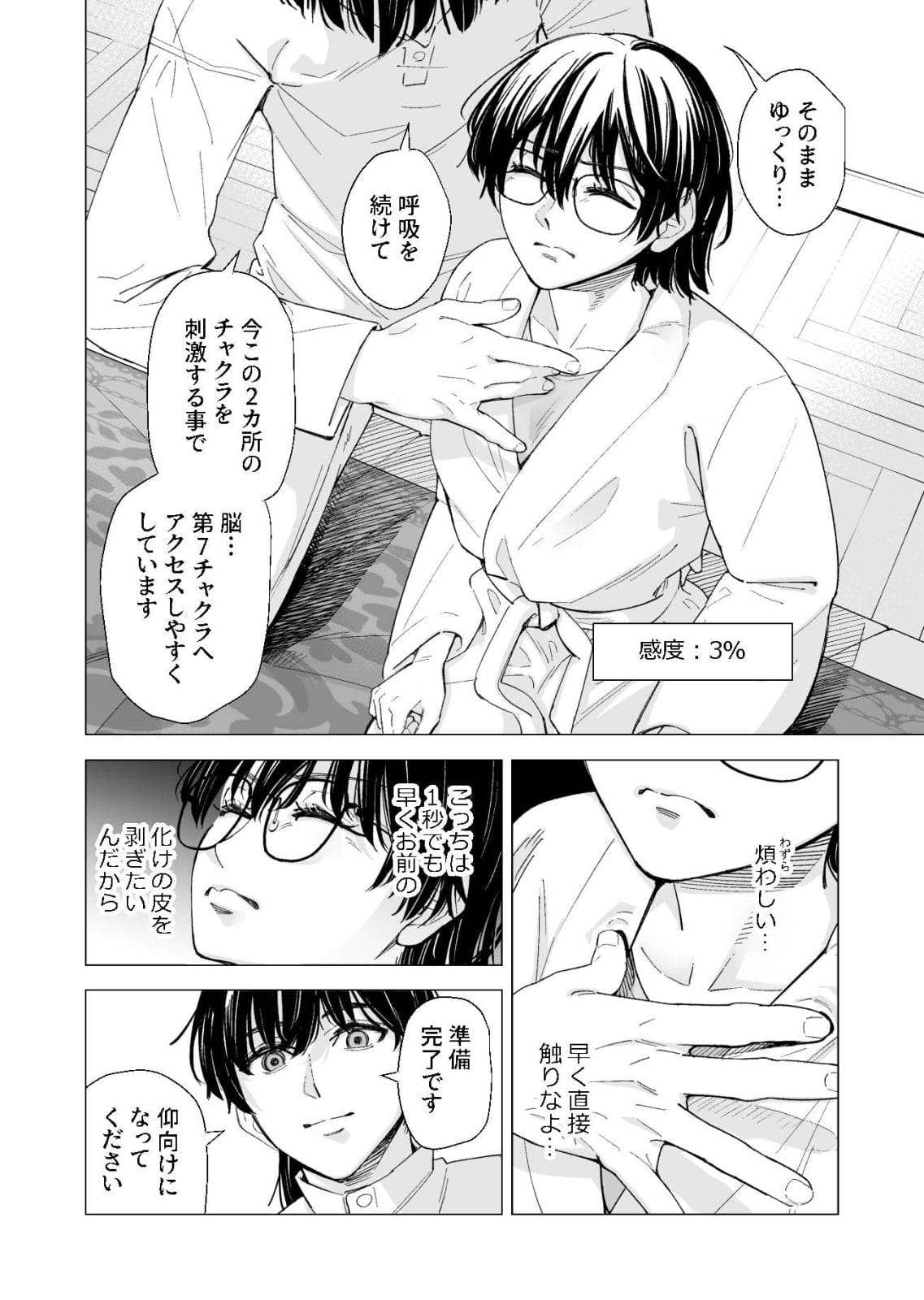 男を全く信用していないお堅い不感症OLが、同僚の強い勧めで仕方なく怪しいヒーリングを受けることに…。冷めた視線で「変な所触ったら訴えてやる!」と考えながら施術を受けているとドンドン身体の感度が上がっていき…