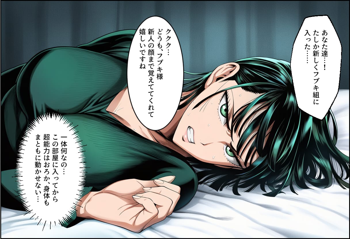 ある部屋に入った瞬間、体に力が入らなくなってしまったフブキ…!フブキ組の新人の罠にハメられまともに体を動かせず抵抗できない状態で、ゲス男達に好き放題に体を弄られて屈辱のアクメをキメられてしまう…!ついには挿入まで…