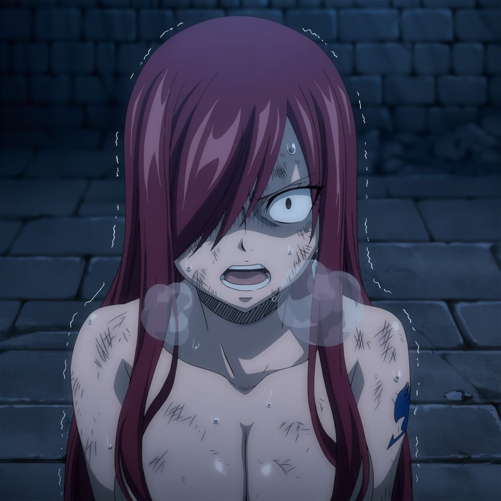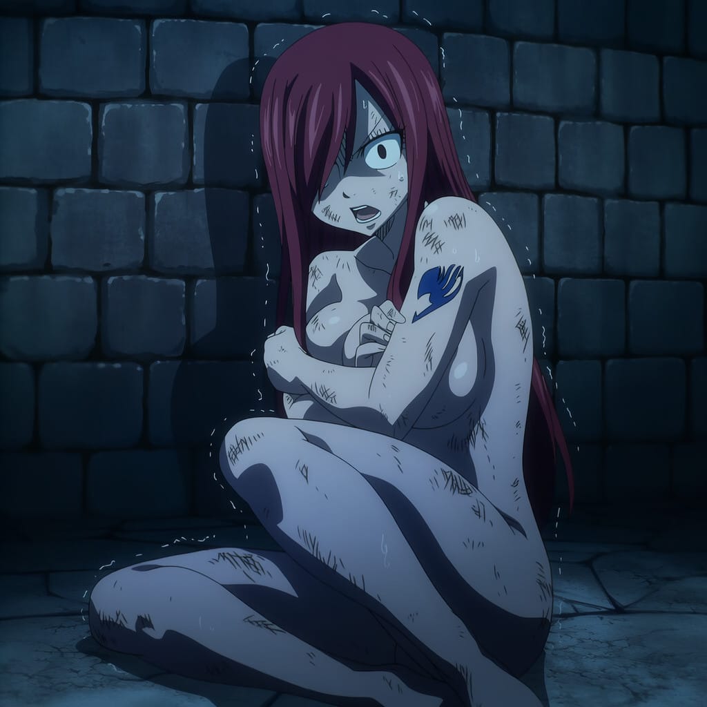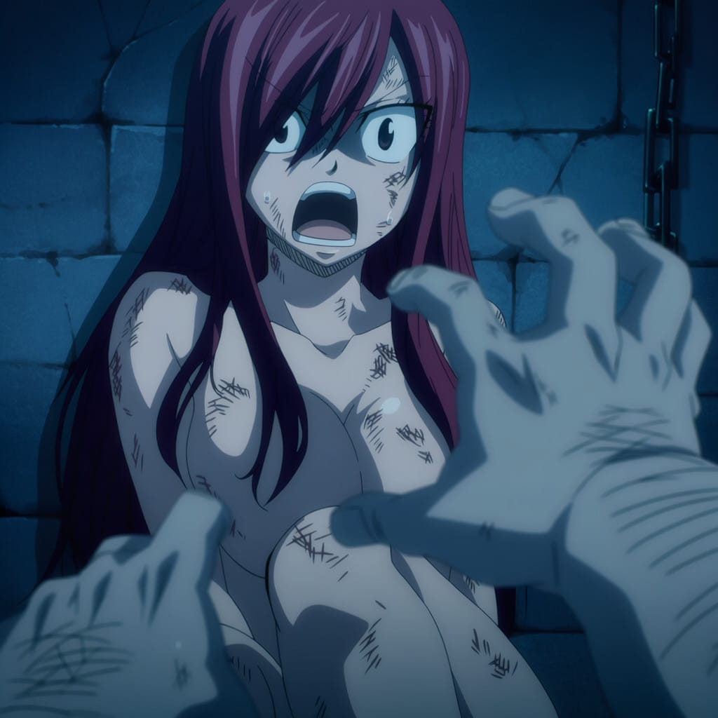 キョウカに囚われ、牢獄で拷問を受けてしまうエルザ・スカーレット。鞭打ちでは折れないエルザに対してキモデブ中年がけしかけられ、力の入らないエルザが押さえ込まれて無理やり犯されてしまう…