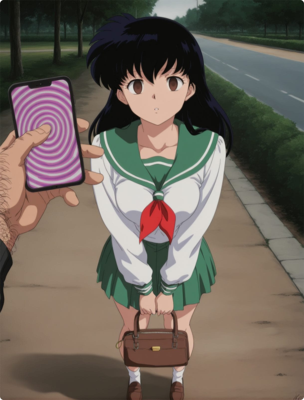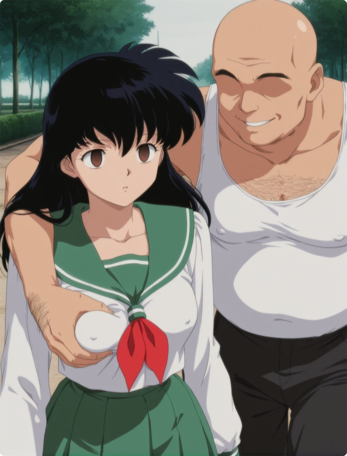 【犬夜叉】気づいたら大量種付けされていた日暮かごめ…!公園で催眠アプリおじさんに遭遇してしまった結果…