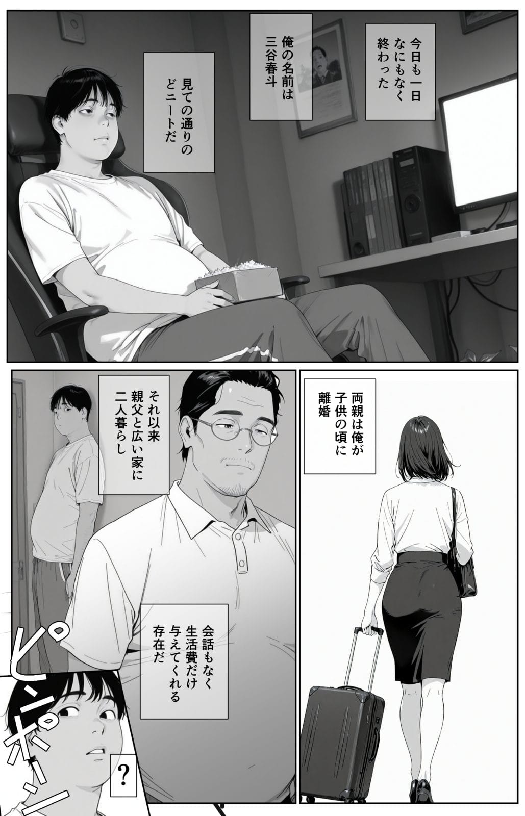 ニート生活で父親とは不干渉だった主人公に突然義母と義妹ができた…!?父がいつのまにか再婚していたらしく、見知らぬ美人母と美少女JC妹と同居生活が始まった…。ラッキースケベハプニングがちょくちょく発生して性欲を持て余す毎日を過ごしていると…